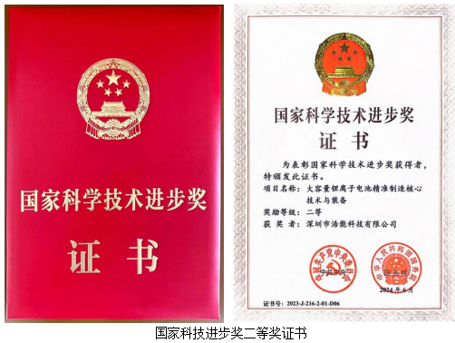 2024年6月24日,全資子公司浩能科技榮獲“2023年國家科學技術進步獎二等獎”。